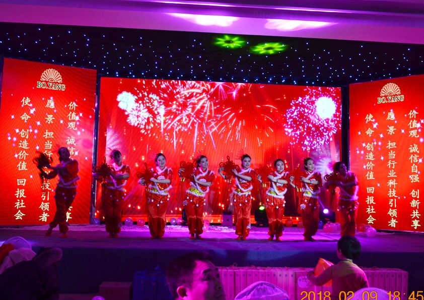 隨著一曲歡快的音樂,舞蹈人員翩翩起舞,安丘博陽機械2018年年會慶典正式拉開帷幕。