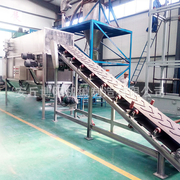 針對(duì)這種白炭黑的污染問(wèn)題,安丘博陽(yáng)機(jī)械研發(fā)制造了無(wú)塵自動(dòng)拆包機(jī)。無(wú)塵自動(dòng)拆包機(jī)是通過(guò)上料設(shè)備將袋裝白炭黑送進(jìn)拆包機(jī),然后通過(guò)割刀將袋子割破卸料,最后通過(guò)篩分裝置實(shí)現(xiàn)袋料分離。并且該設(shè)備內(nèi)置吸附裝置能持續(xù)將設(shè)備內(nèi)擴(kuò)散漂浮的白炭黑吸附處理,另外整個(gè)拆包過(guò)程是在一個(gè)密閉的空間內(nèi),這樣無(wú)論再細(xì)的物料,都可以達(dá)到“零粉塵”。