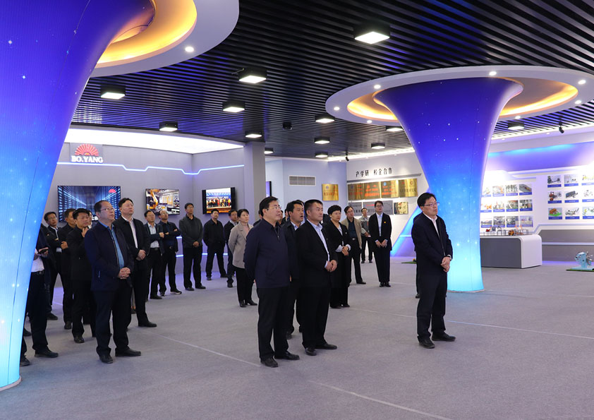 2020年11月15日安丘市市委書記李新閣帶領觀摩團來博陽機械指導工作,總經理閆吉祥向各位考察團領導介紹了公司近幾年的發展情況和取得的