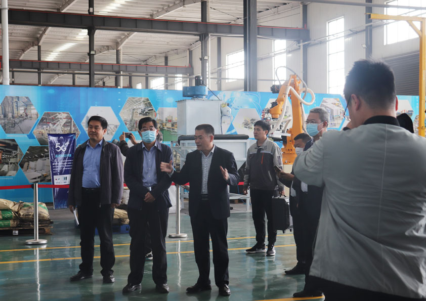 博陽機械總經(jīng)理閆吉祥陪同各政府工作人員參觀了公司的產(chǎn)品調試車間和企業(yè)技術成果展廳。閆吉祥總經(jīng)理不僅各政府領導介紹了智能化拆碼垛機器人、自動化出入庫AGV、智能立體倉庫等核心產(chǎn)品,并向各級政府領導展示了公司依托大數(shù)據(jù)、物聯(lián)網(wǎng)、云計算、資源信息共享平臺及利用“5G技術+互聯(lián)網(wǎng)+智能制造+定制化服務”理念和思維方式,以科技創(chuàng)新為核心,以品牌戰(zhàn)略、精細化營銷戰(zhàn)略、人才戰(zhàn)略、信息化戰(zhàn)略為支撐,實現(xiàn)了高端裝備制造行業(yè)供應鏈、產(chǎn)業(yè)鏈的萬物互聯(lián)。