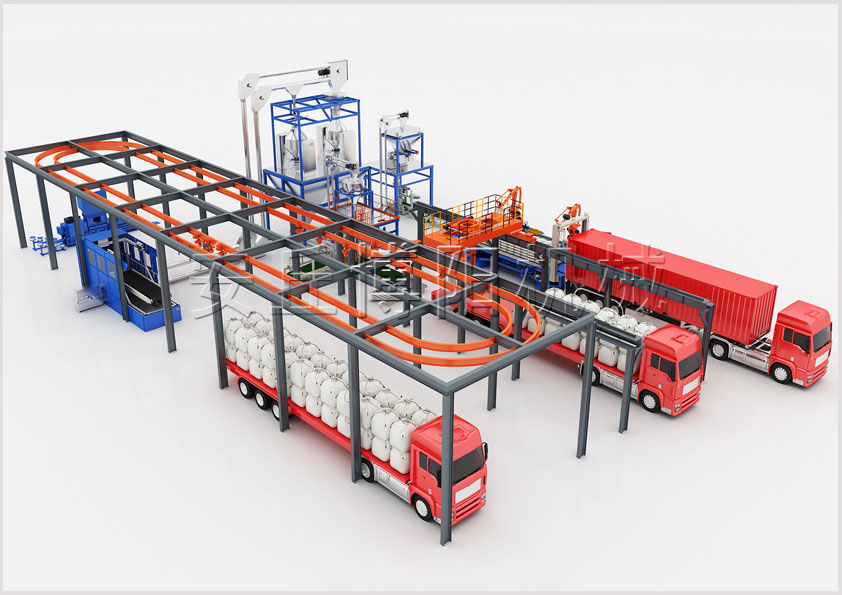 不落地噸袋全自動拆包機可實現噸袋從卸車到拆包的全自動化,也叫全自動噸袋拆包機。
