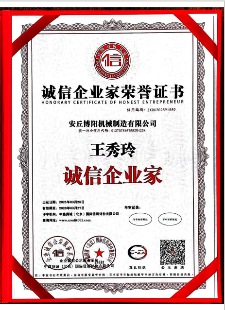 誠信企業家榮譽證書